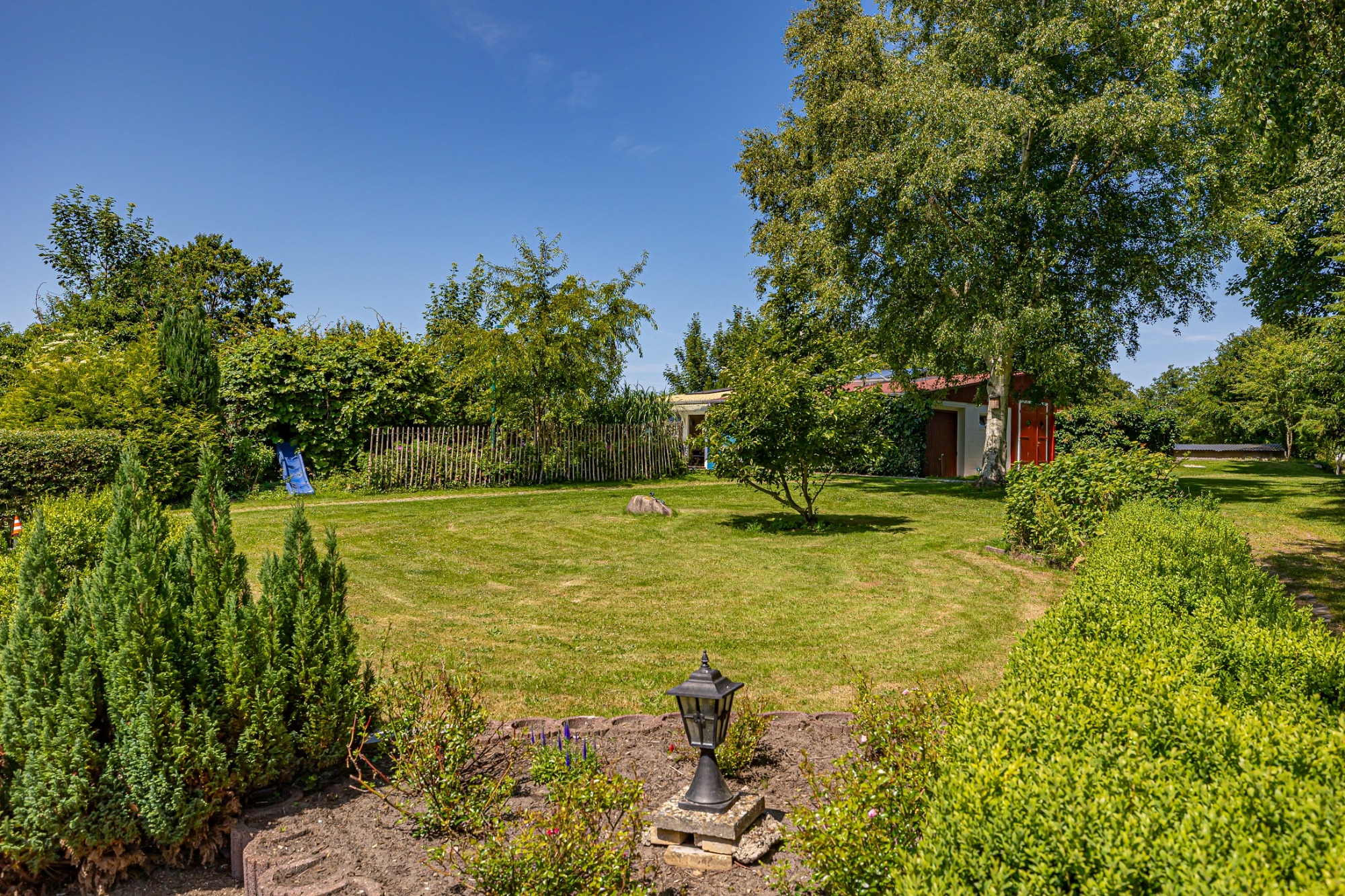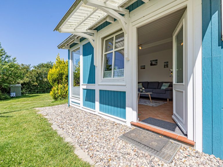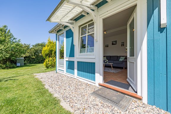 - mit Terrasse, eingezäuntem/kleinen Rasenstück, Gartenstuhl und Tisch