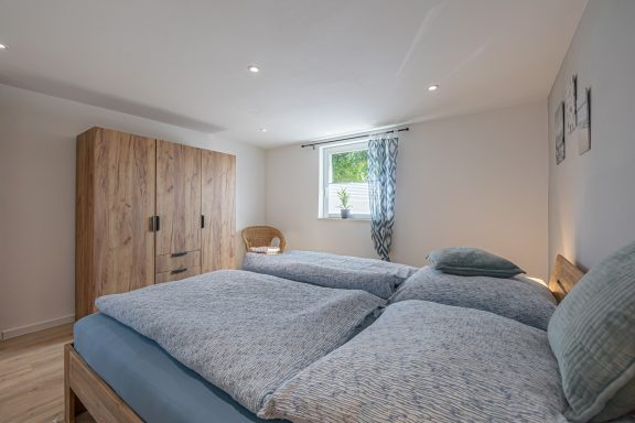 - Schlafzimmer mit Doppelbett 180x200, Kleiderschrank, Nachttische