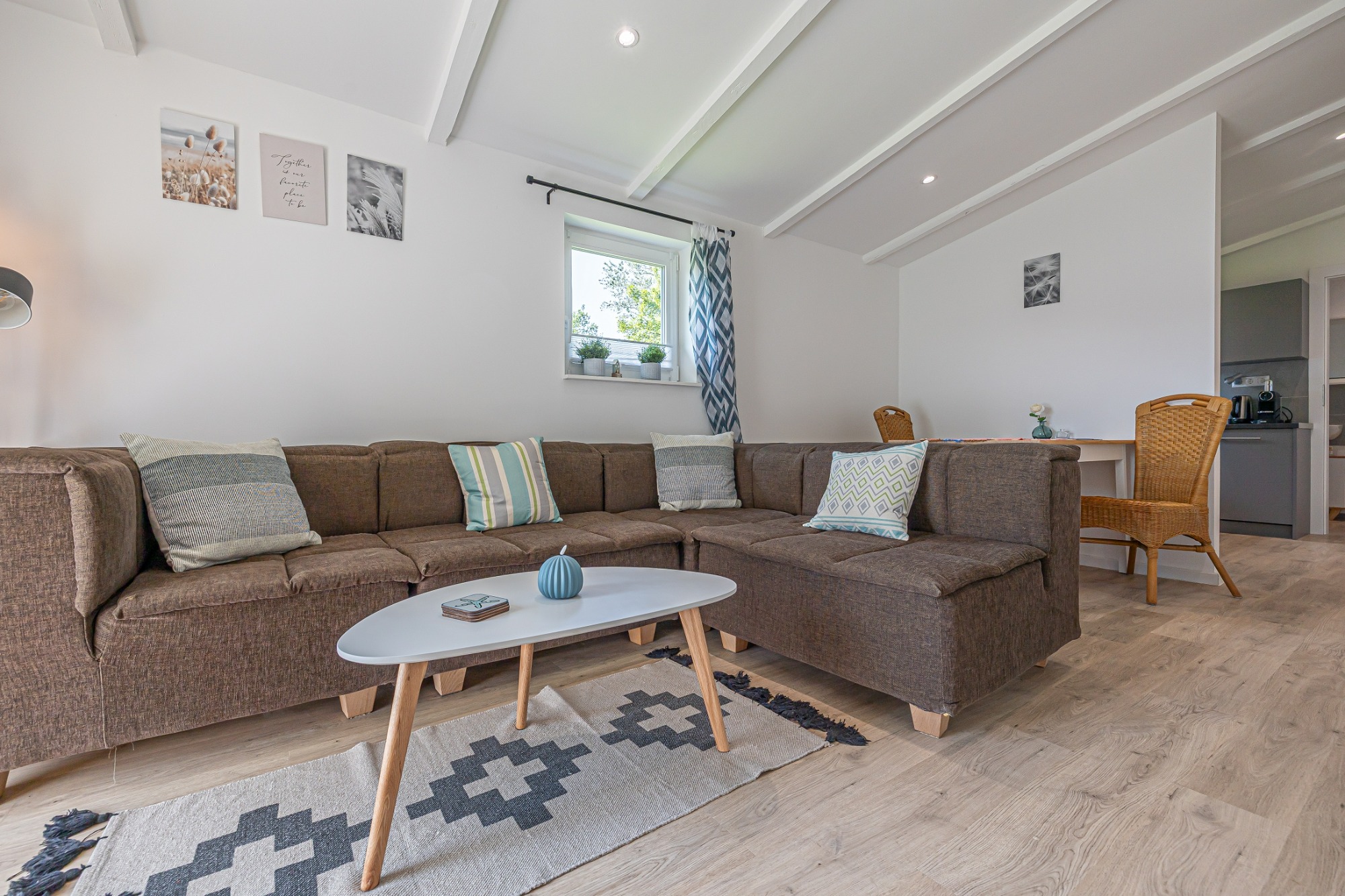 - Wohn- / Esszimmer mit Terrassenzugang, Ecksofa, Esstisch, Radio, TV-Waipu