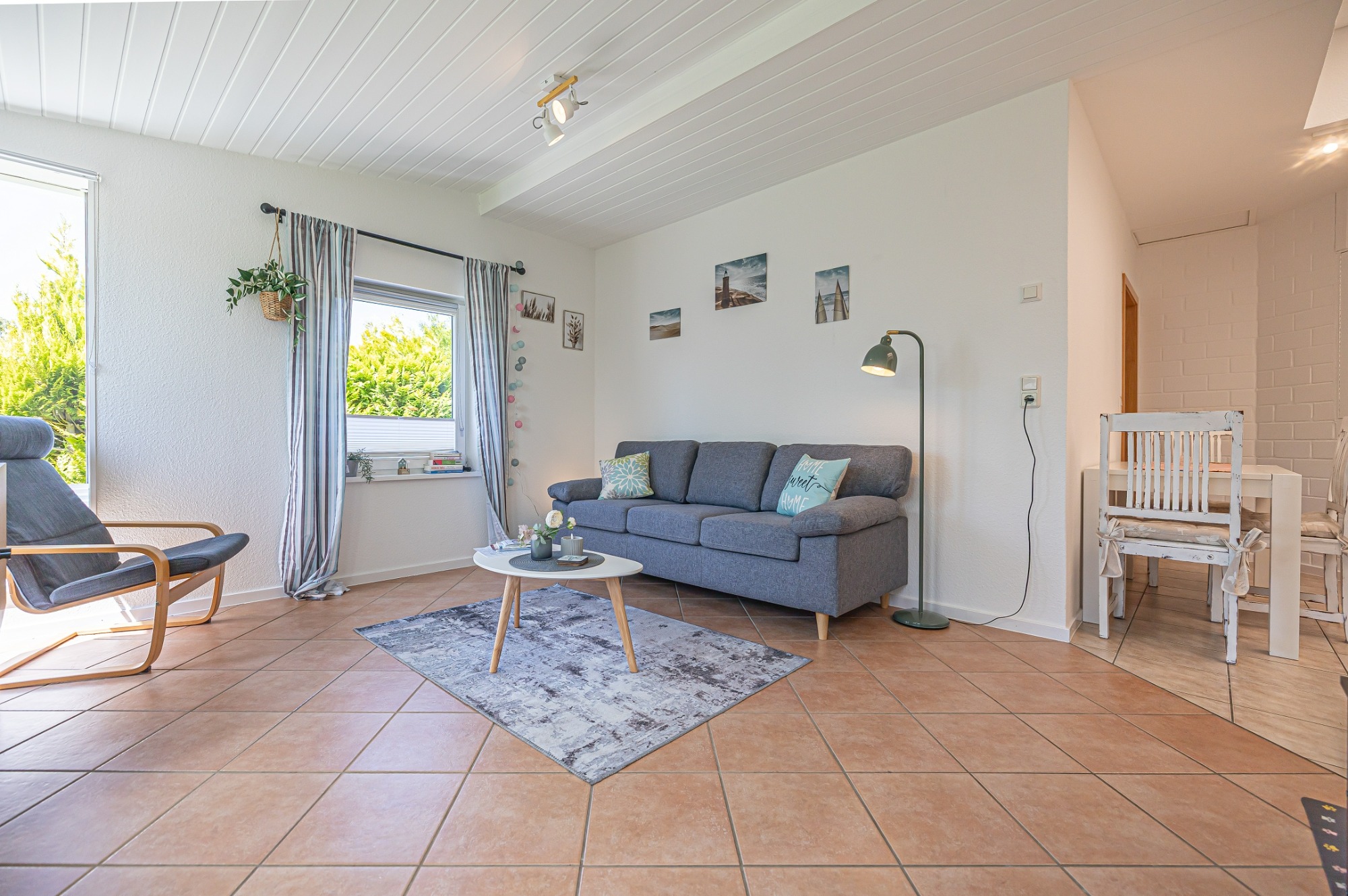 - Wohn-/Esszimmer mit Sofa, Sessel, Esstisch/Stühle, Radio, TV-Waipu, Terrassenzugang
