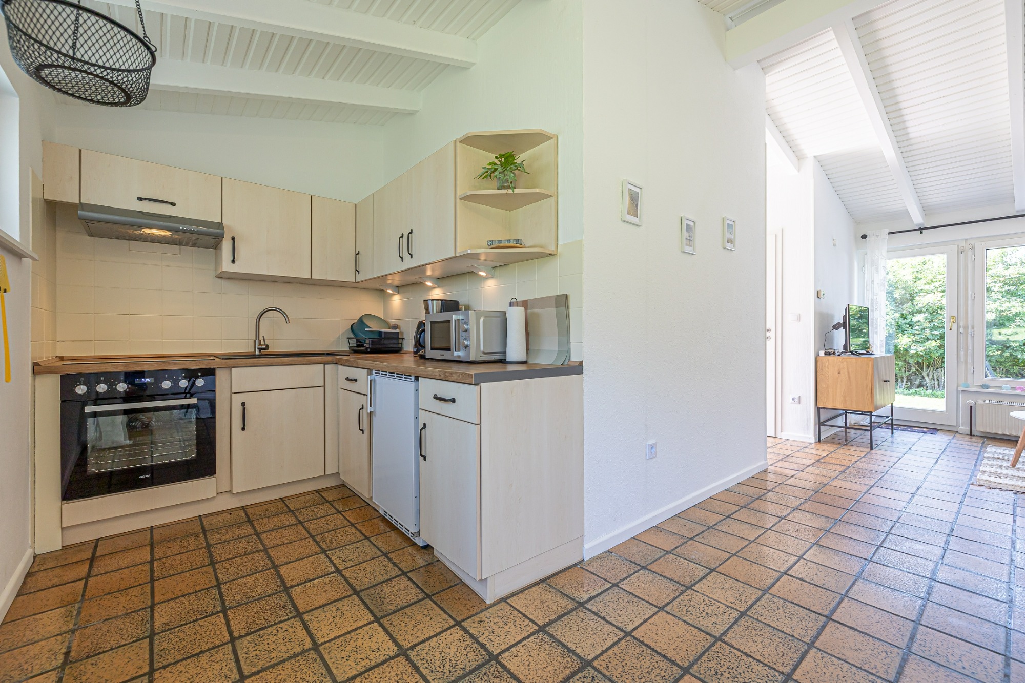 - angrenzend Küche/Essbereich mit Kaffeemaschine, Wasserkocher, Toaster, Mixer, Küchenutensilien